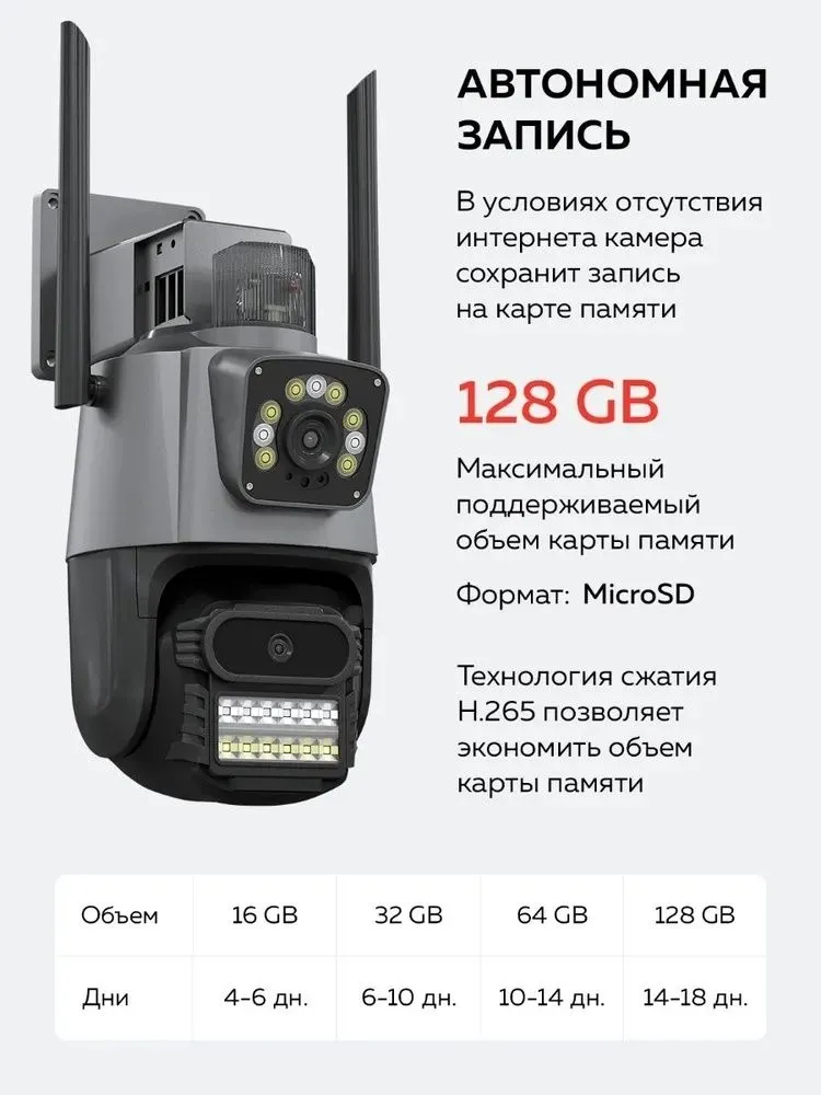 Благодаря возможности установки карты памяти, камера способна работать в автономном режиме, записывая видео даже без подключения к другим устройствам. Умная Wi-Fi камера видеонаблюдения — это надежный помощник для обеспечения безопасности и контроля в любое время суток.